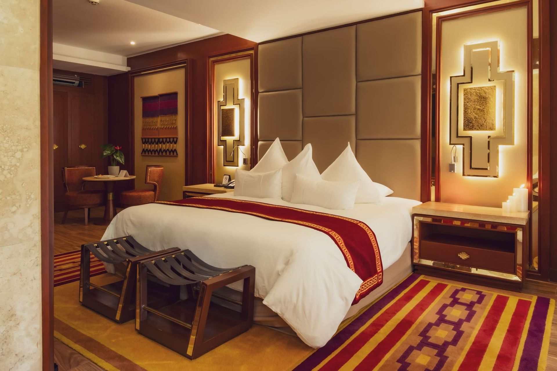 Las ventanas panorámicas de la Suite Imperial miran hacia las montañas de Machu Picchu y al río Vilcanota. Disfrute de un lujoso baño de burbujas en su jacuzzi hidromasaje, deleitándose de la misma vista impresionante. El sueño más tranquilo lo espera en esta espaciosa suite con una cómoda cama king size, edredones de plumas y los detalles perfectos para usted.